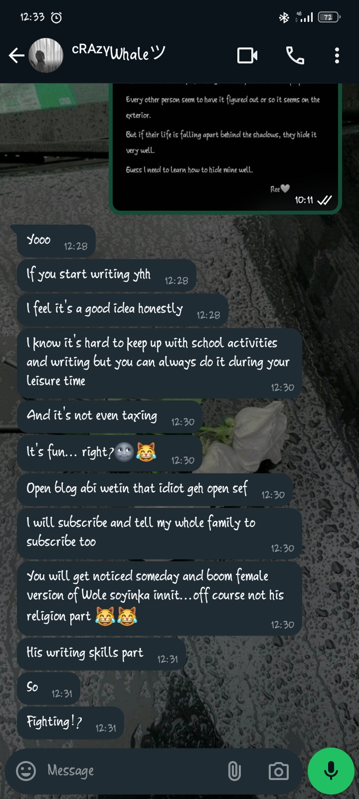 I started this newsletter August, after much pressure from a particular friend who wouldn't leave my ass (and thank goodness they didn't!). I did ask other people before starting it, because self-doubt just wouldn't let me go. I remember asking, "This is a decision that will change the trajectory of my life. Should I do it?" Their encouragement gave me the push I needed. One friend even put me on a phone call and told me to do it if it's what I truly love. And now, here I am, embarking on this exciting new journey. I'm so glad I listened to them, because if I hadn't, you wouldn't be here reading this.